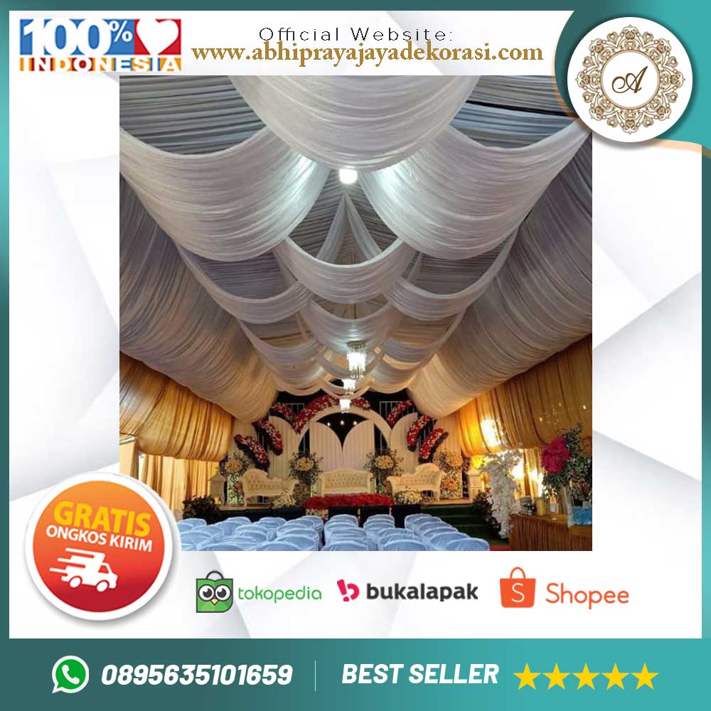Jual Plafon Dekorasi Model Slendang – Kami menyediakan berbagai perlengkapan dan aksesoris background tenda yang berkualitas, didesain dengan bentuk yang unik dan bahan kain berkualitas, anda bisa mendapatkan sarung kursi hanya di Karomah Dekorasi Tenda, kami menyediakan beberapa background tenda, background tenda pesta, background tenda hajatan, background slendang, background ombak, background poni mayang, background poni spanyol, background rempel, background mayang rempel double , dll