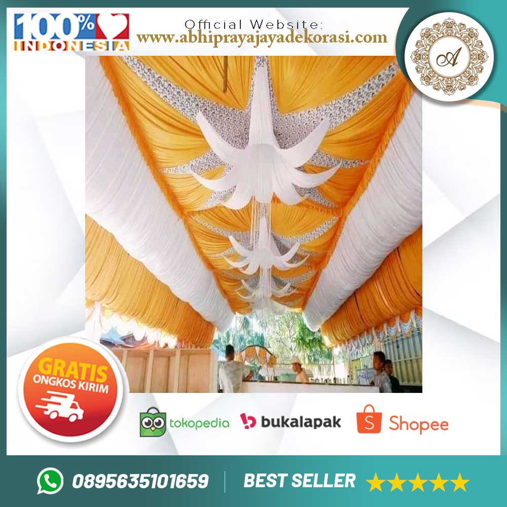 Jual Plafon Dekorasi Model Terompet – Kami menyediakan berbagai perlengkapan dan aksesoris background tenda yang berkualitas, didesain dengan bentuk yang unik dan bahan kain berkualitas, anda bisa mendapatkan sarung kursi hanya di Karomah Dekorasi Tenda, kami menyediakan beberapa background tenda, background tenda pesta, background tenda hajatan, background slendang, background ombak, background poni mayang, background poni spanyol, background rempel, background mayang rempel double , dll